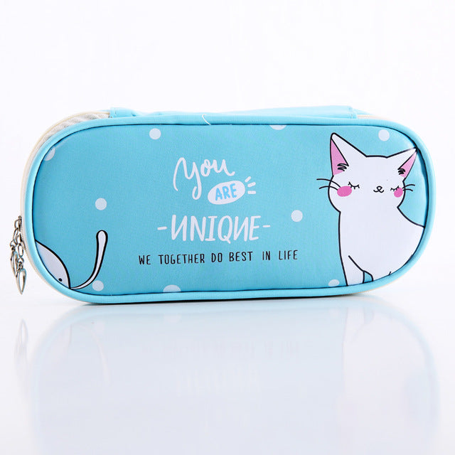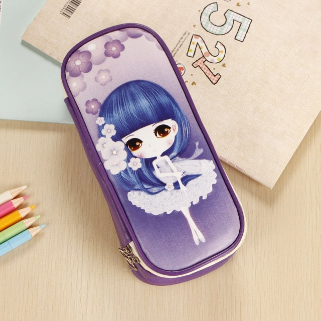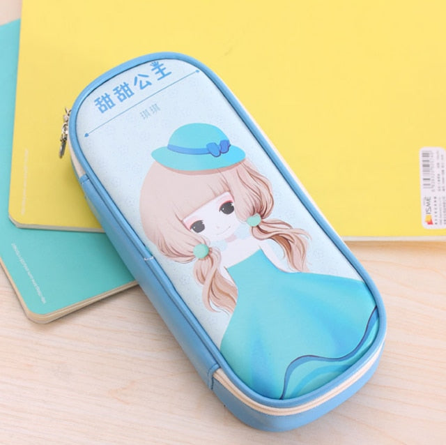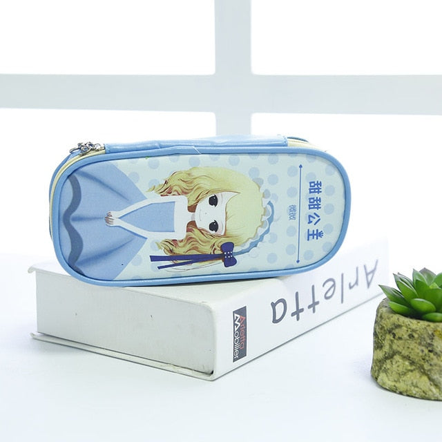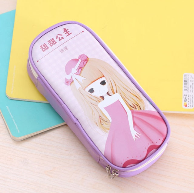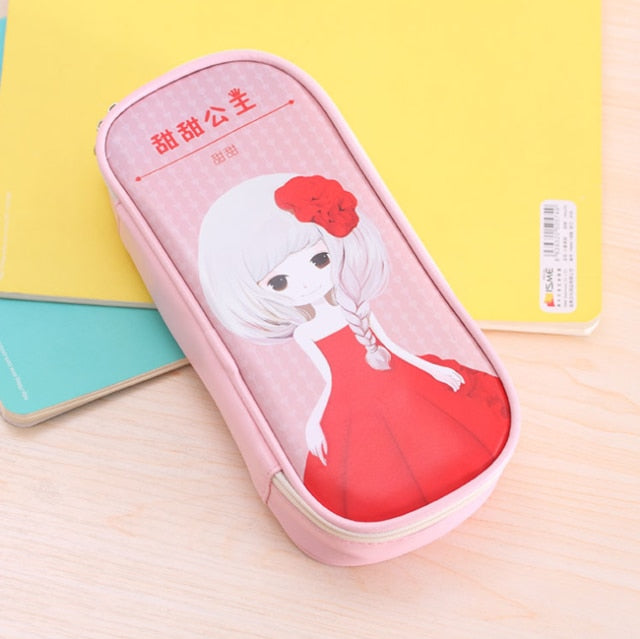 Cute Pencil Case Large-Capacity Leather Double Layer Lovely Princess Printed