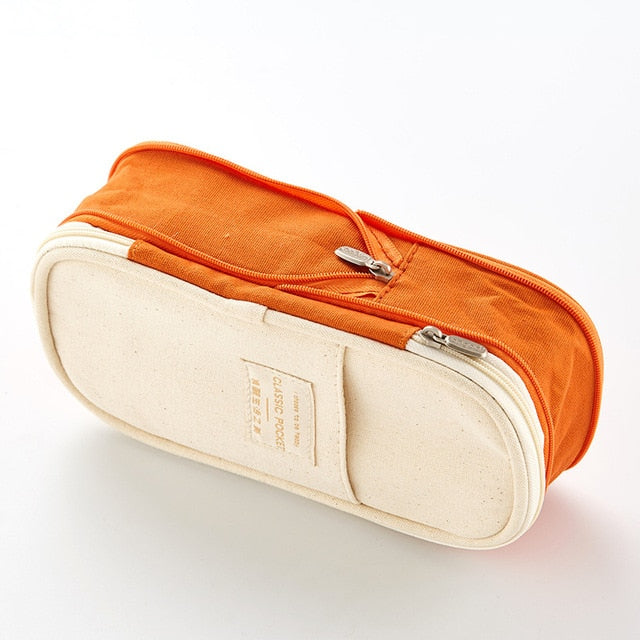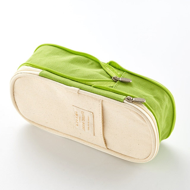 Pencil Case Macaron Color Canvas Stretch Double Layer Large-Capacity